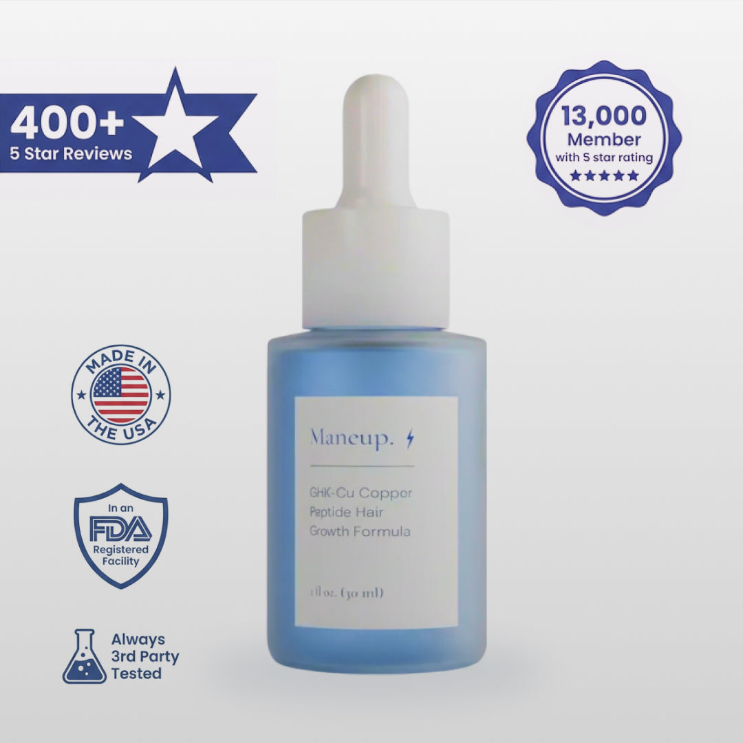 Our proprietary GHK-Cu formula was developed with a leading R&D facility to ensure maximum scalp permeability and optimal absorption. No corners cut—no cheap fillers. Just a clean, pure formula that’s rigorously third-party tested for quality and purity.